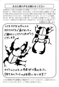 幼い頃は、とても貧しく、ラジコンなど、とても買えずにいました。兄と二人、山に川と、遊び魚や虫を取って楽しみました。ヘラクレスやヒラタ、など図鑑で見て外国の昆虫を見てみたいと思ってました。大人になり、子供も、成長して、自分の趣味として楽しんでいきたいと思います。信頼して買えるので感謝しています。