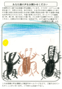 ありがとうございます。ぼくはオオクワガタのよう虫を買いました。今マットでそだててるこたいと、きんしびんでそだてているこたいと分けて、どっちが大きくなるかためして、今後のしいくに生かしたいと思っています。
