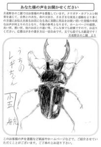 月夜野さんの菌糸ビン等は、幼虫の食いつきもよく、とてもうれしいです。今後ともよろしくお願いします。
