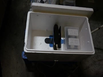 発泡スチロール簡易温室内の温度を26℃ぐらいまで上げてから