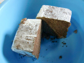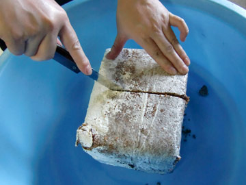 今回は実験のため菌糸ブロックを半分に切り分け、