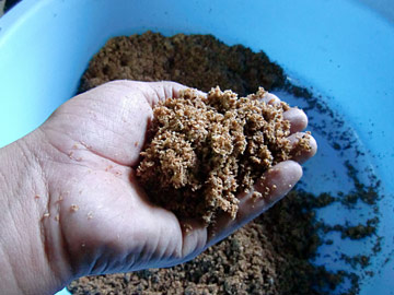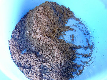 今回、ある程度スリコギ棒で崩したあと手で崩しました。