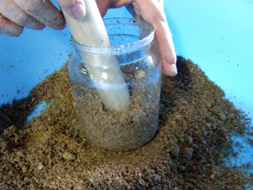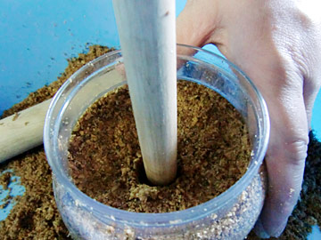 ビンの肩のところは指で押し込みながら詰めていきます。