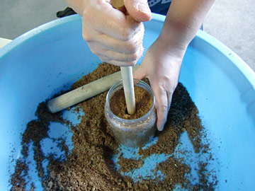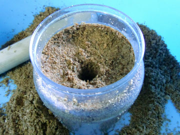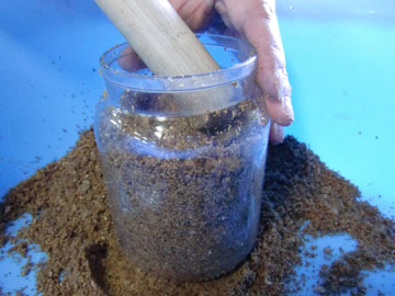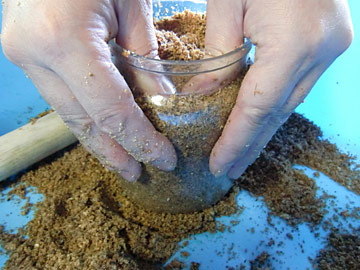 (素手は危険ですので必ず、スリコギ棒などで崩してください)