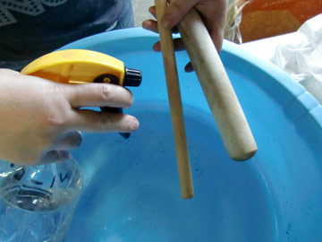 直径1cm程度の長い棒を真ん中に差し込みます。