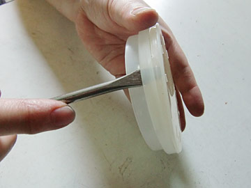 それでは、手を良く洗い、水洗いしたカッターで菌糸の白い幕(皮膜)