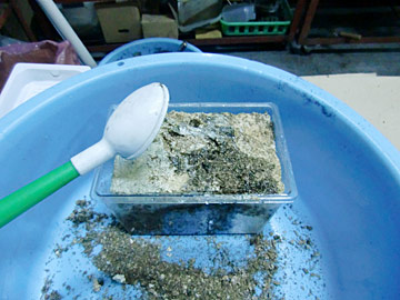 穴の空けたビニールシートをフタとケースの間に挟みます。