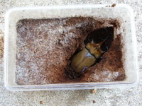 羽化して間もない成虫はまだ体が固まっていないので、 掘り出す場合は 羽化から3~4週間程度経ってからにします。