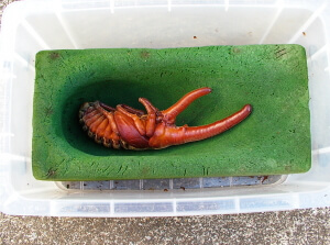 羽化して間もない成虫はまだ体が固まっていないので、 掘り出す場合は 羽化から3~4週間程度経ってからにします。