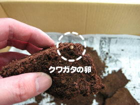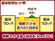 産卵木の代わりに菌床ブロックを使う産卵方法。卵や幼虫を割り出すのが非常に簡単です。