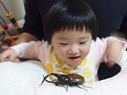 1歳6ヶ月の楓音ちゃん、初めてのカブトムシに大喜びw