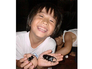 このミヤマクワガタは、 福島県川俣町の山奥の雑木林に入って、2時間ぐらい掛けて採集しました。 今年は、大雨の洪水が多く3日間かけて探すことが出来ました。 現在住んでいる千葉県では、ミヤマクワガタが採集出来ないので、 今年は、福島県まで車で行きました。 このミヤマクワガタは、私にとって、すごい思い出になります。 また、ミヤマクワガタのメスも夏休み福島県まで採集に行って、 今回のオスと結婚させてあげたいと思っています。 来年は、この夫婦の子供ミヤマクワガタを紹介します。