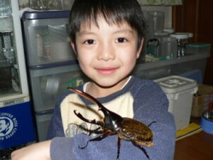 長男と次男とでとても大事に育てました。ヒラタ系は初めてだったので、私(父)なりに夏場の時期は色々気を使いました。1年2ヶ月でやっと羽化させました。子供達もとっても喜んでいます。