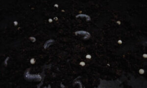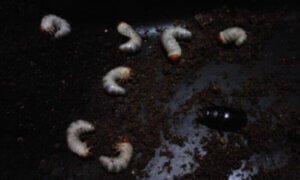 エサ交換時に覗いてもいつもメスが見当たらず、メス取り出しと幼虫割り出しが同じタイミングになってしまいました。幼虫は約2/3が産卵木の中に、残り約1/3はくわマットの中ですくすくと育っていました。