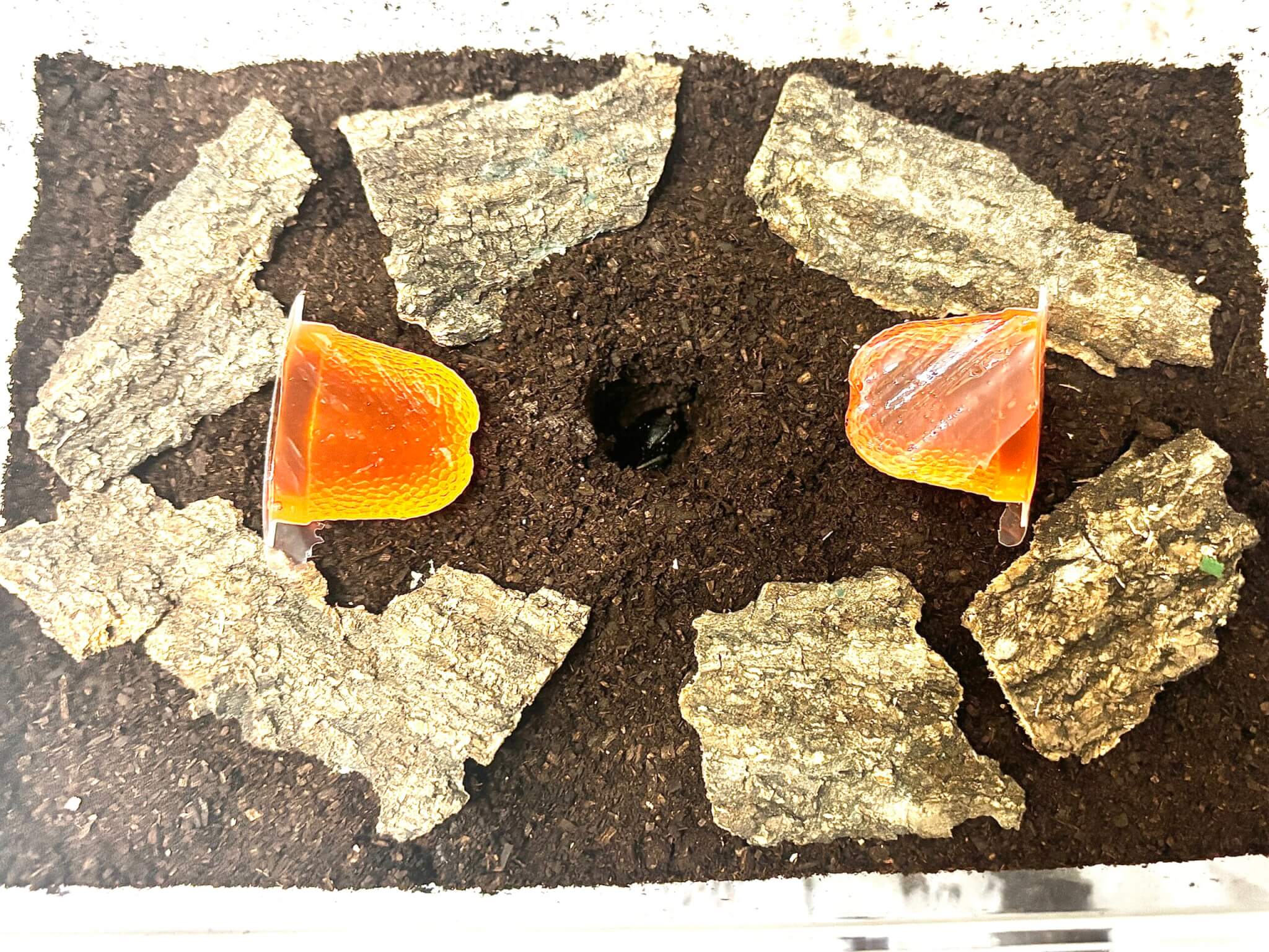 ペアリングの際、メイトガードが確認出来るまで4日もかかったので、♂や♀が小さい場合はより狭いカップやボトル同居の方が早かったかも知れません。