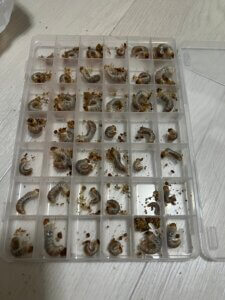 産卵数の内訳幼虫21匹、卵4個