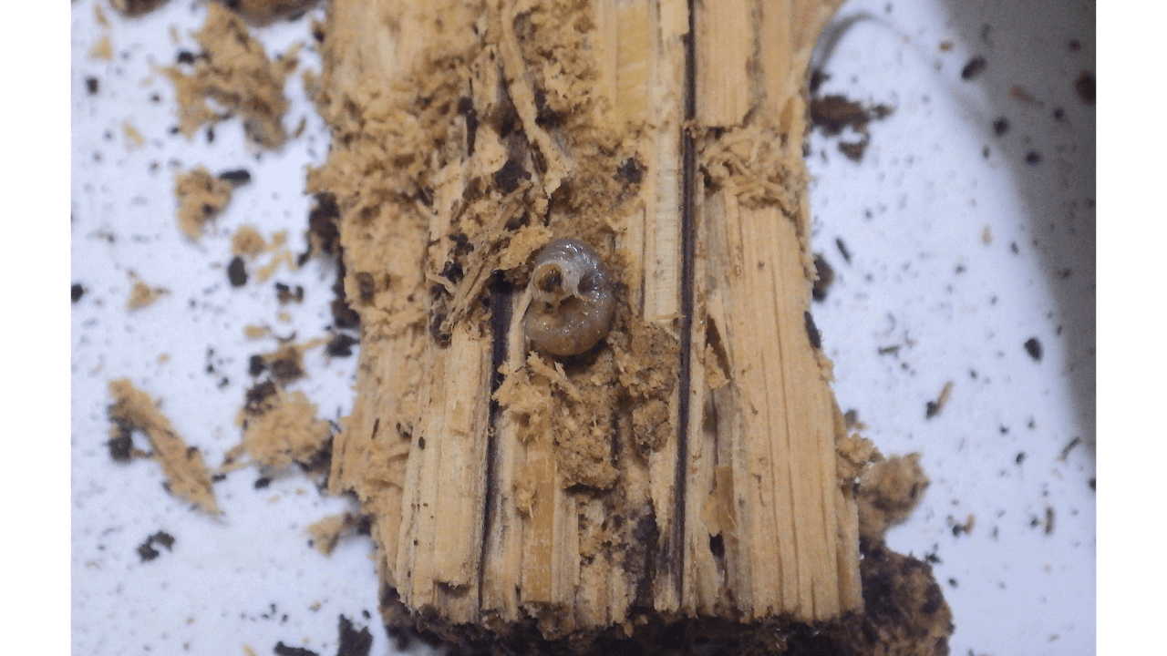 生んだ材から割り出した幼虫は皆、表面近くにおり、中心近くの固い部分にはいませんでした。