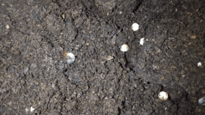 産卵Mat≪プロトタイプ≫を2割ほど堅詰めした上に、柔らか目の産卵木2本を加水して埋め込み。材の周りも固めました。簡易温室で22℃~25℃程度で管理しました。
