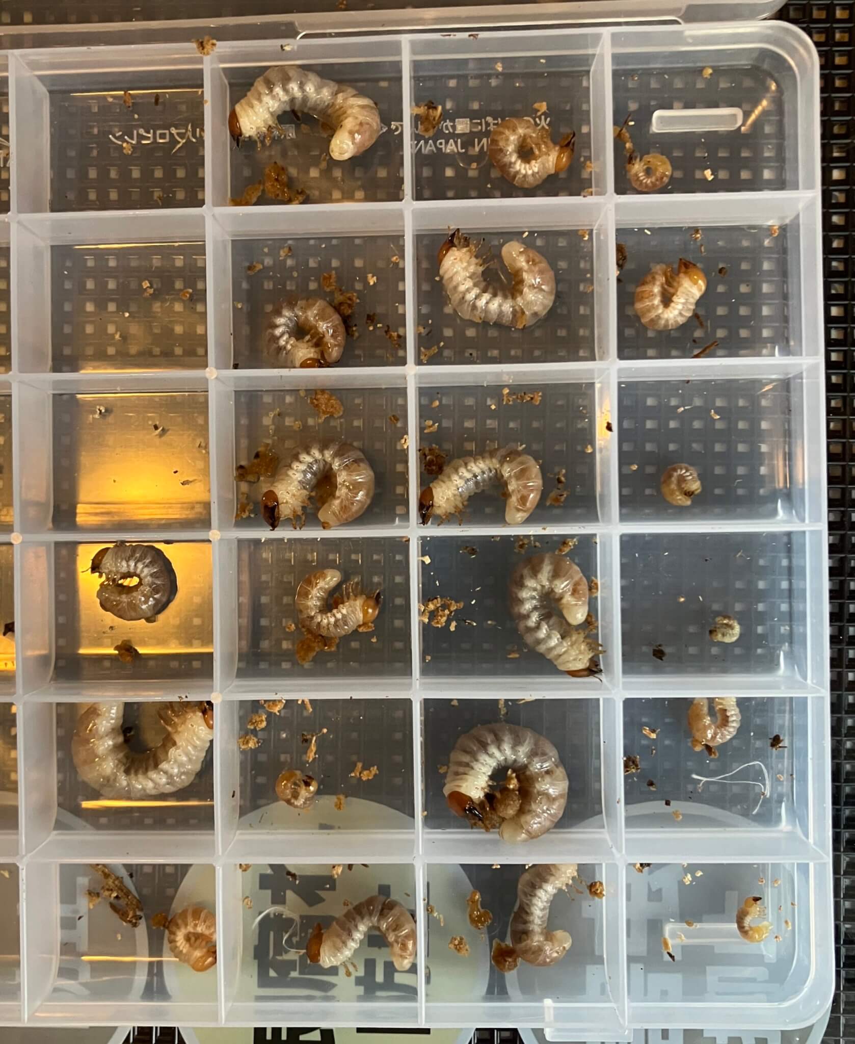 | 産卵数の内訳 | 幼虫 21頭、最大1.7g |