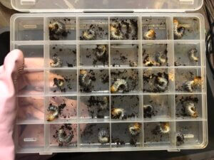 | 産卵数の内訳 | 幼虫 21頭、最大1.7g |