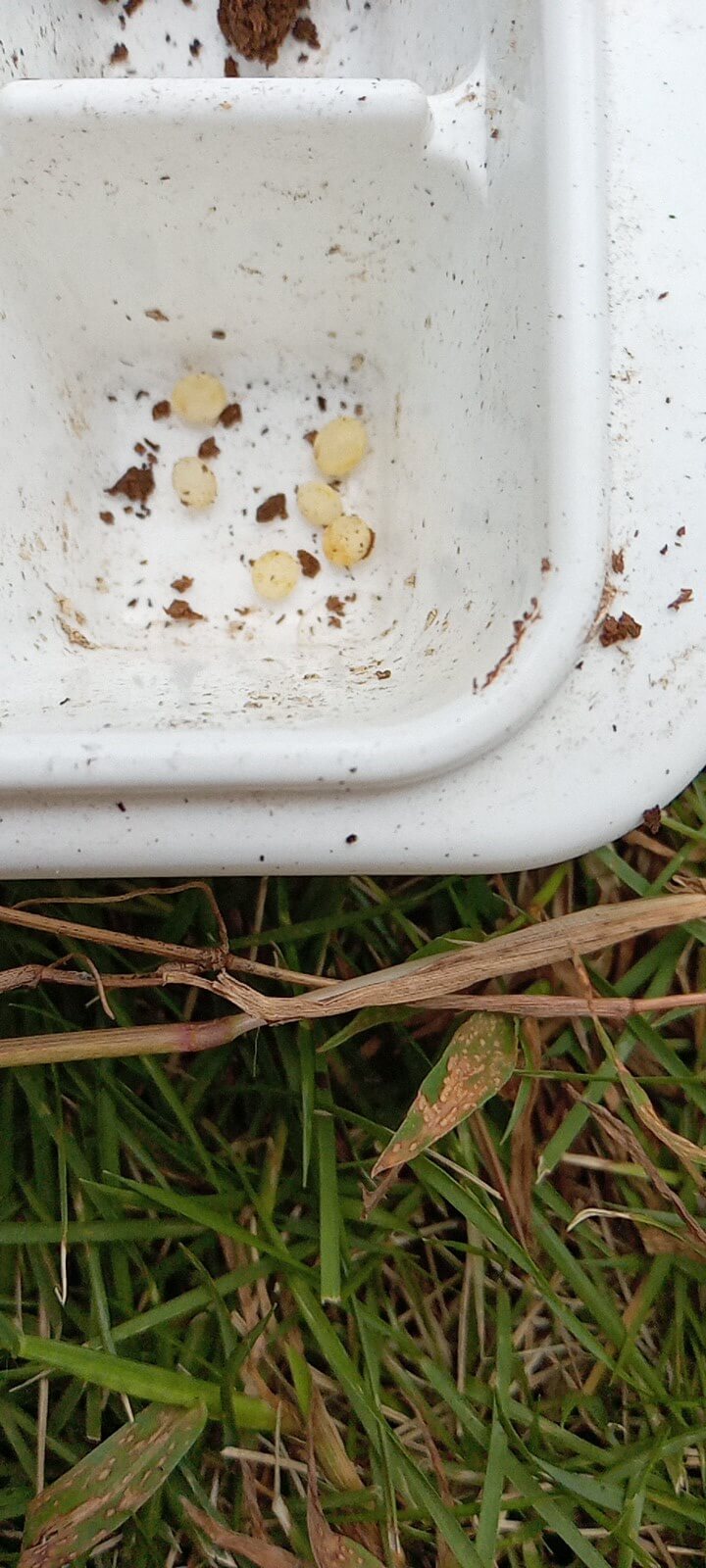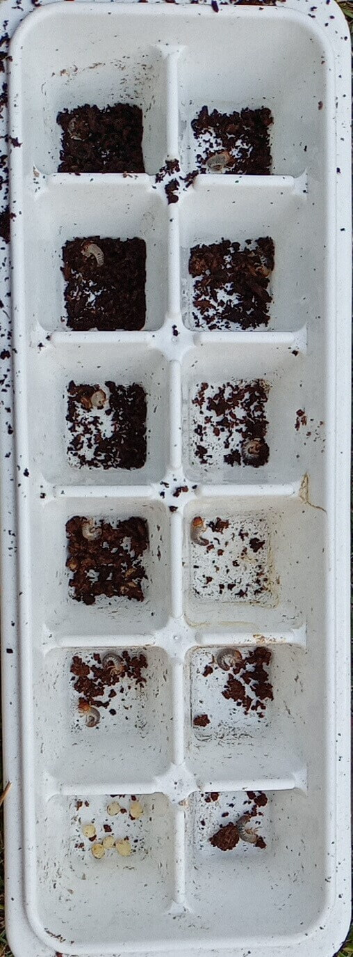 水分が多いせいでカビてしまった卵が見られた。次からは水分量を気をつけたい。きのこマットよりも完熟マットの方が産卵には適してる気がする。