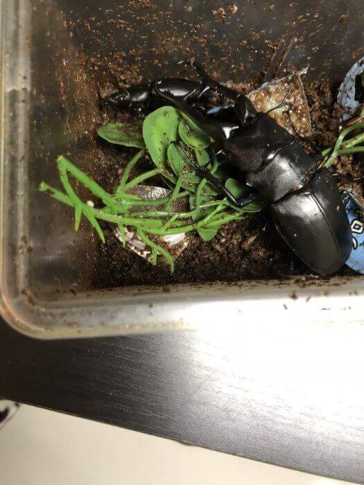 産卵セットでは雌雄別々にしようとしたが、ペアリング用の小ケースからメスを取り出そうとしたところ雄がしつこくメイトガードしてきたため、仲良く一緒に産卵セット投入。