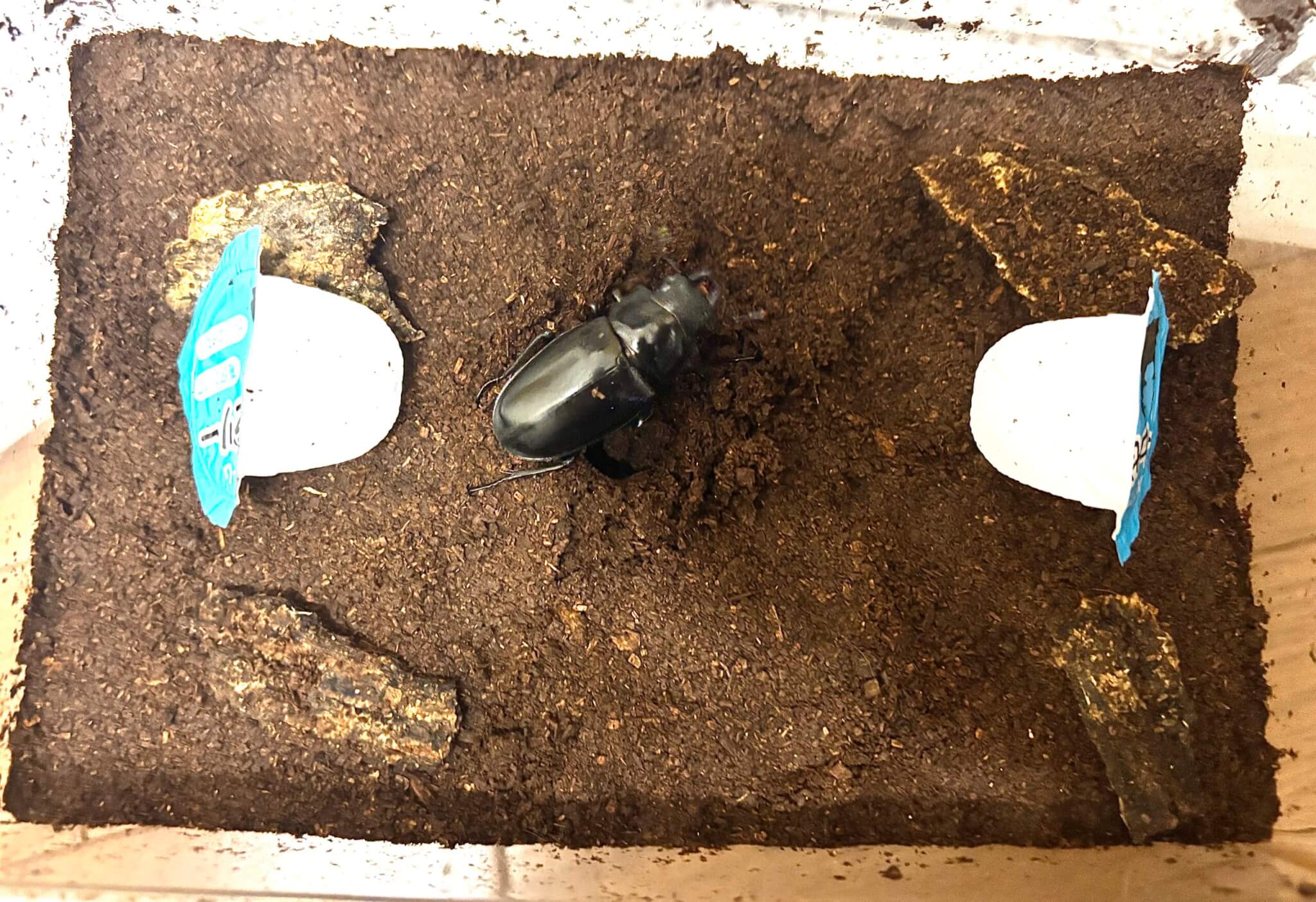 数日経っても卵が見えないので一旦割り出したところ3卵しか産んでおらず、他種幼虫が食い尽くして微粒子化したきのこMatを大量に混ぜて再セットしたら産卵ペースがグッと上がりました。