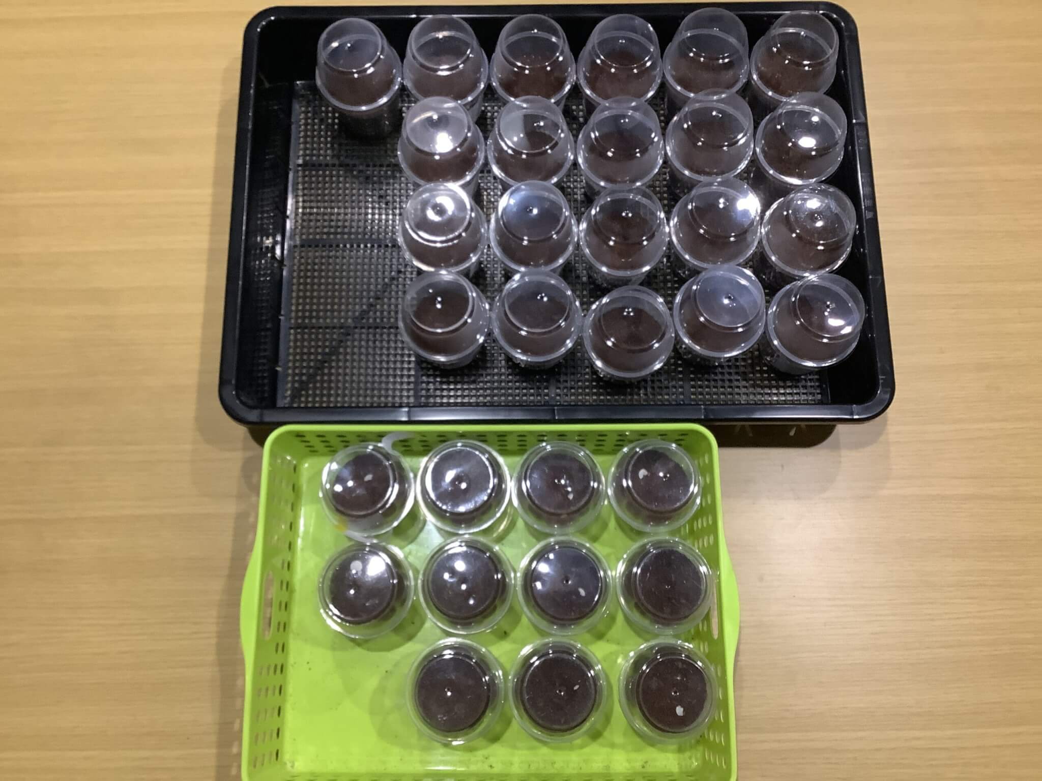コバエシャッター(中)の半分まできのこマットを固詰にし、固詰した上にはふんわりと敷いた