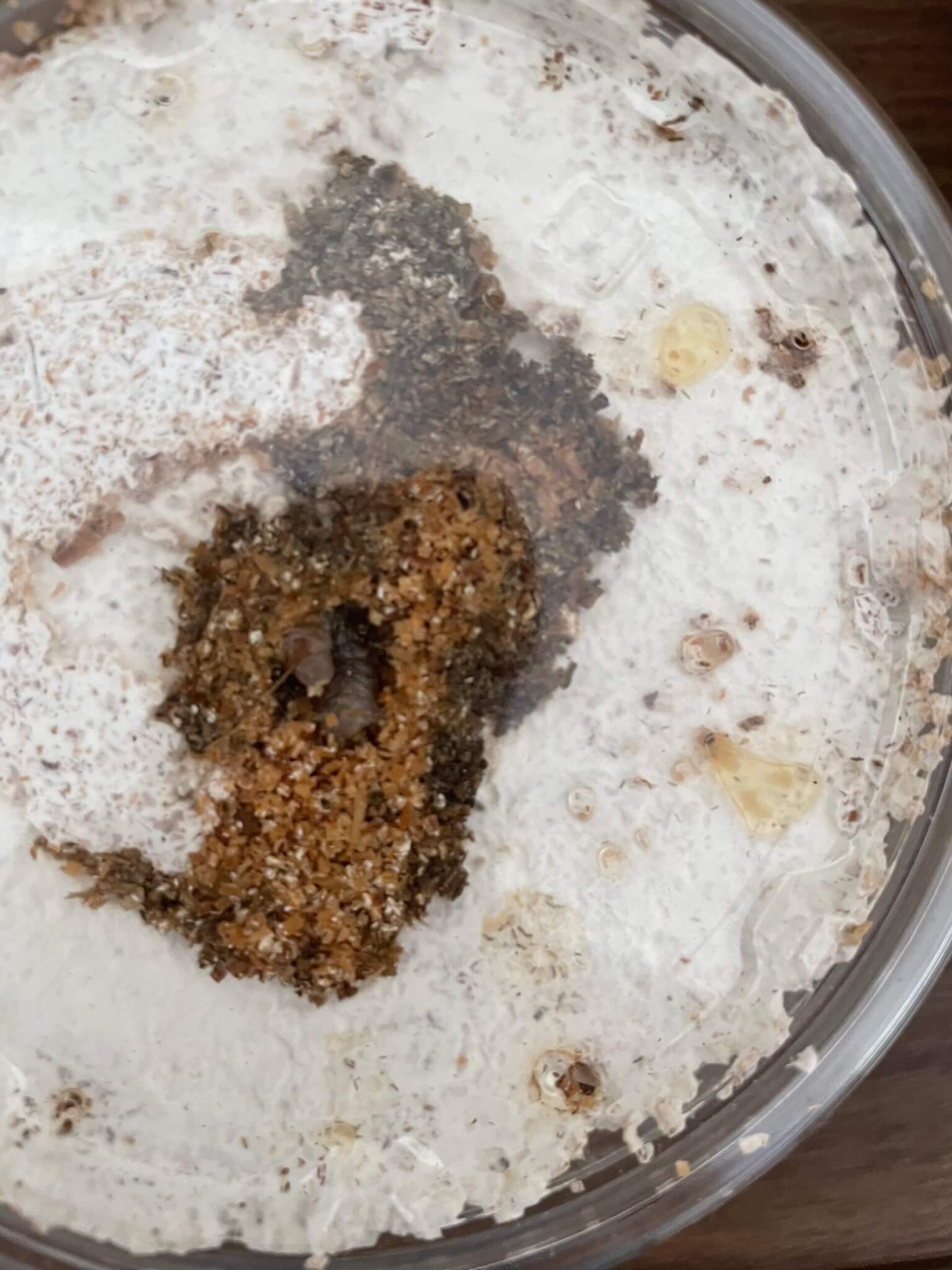 ハンドペアリングを行った♀をコバエシャッター中にきのこマットを8割固詰し上にサラッとマットを引いた物を使用。