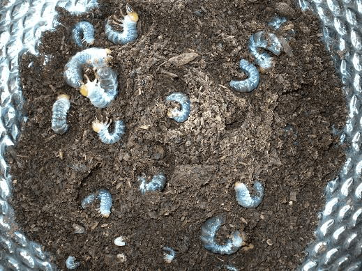 ギラファノコの幼虫はすぐ大きくなる上に凶暴なので、共食いをします。なので、幼虫が見えたらできるだけ早く割り出すことを心がけました。小ケースでセットを組んで、側面に初令が十数頭見えていた産卵セットを、面倒なので1ヶ月放置してから割り出したところ、6頭になっていました。小ケースの場合は特に早い割り出しが必要となります。