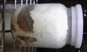 その後、きのこマット(篩にかけた)&市販の微粒子マット、柔らかめの産卵木を使い水分多量でセットしてそのまま1ヶ月間「冷やし虫家」(定温管理機器)の奥のほうで18~19℃で管理。