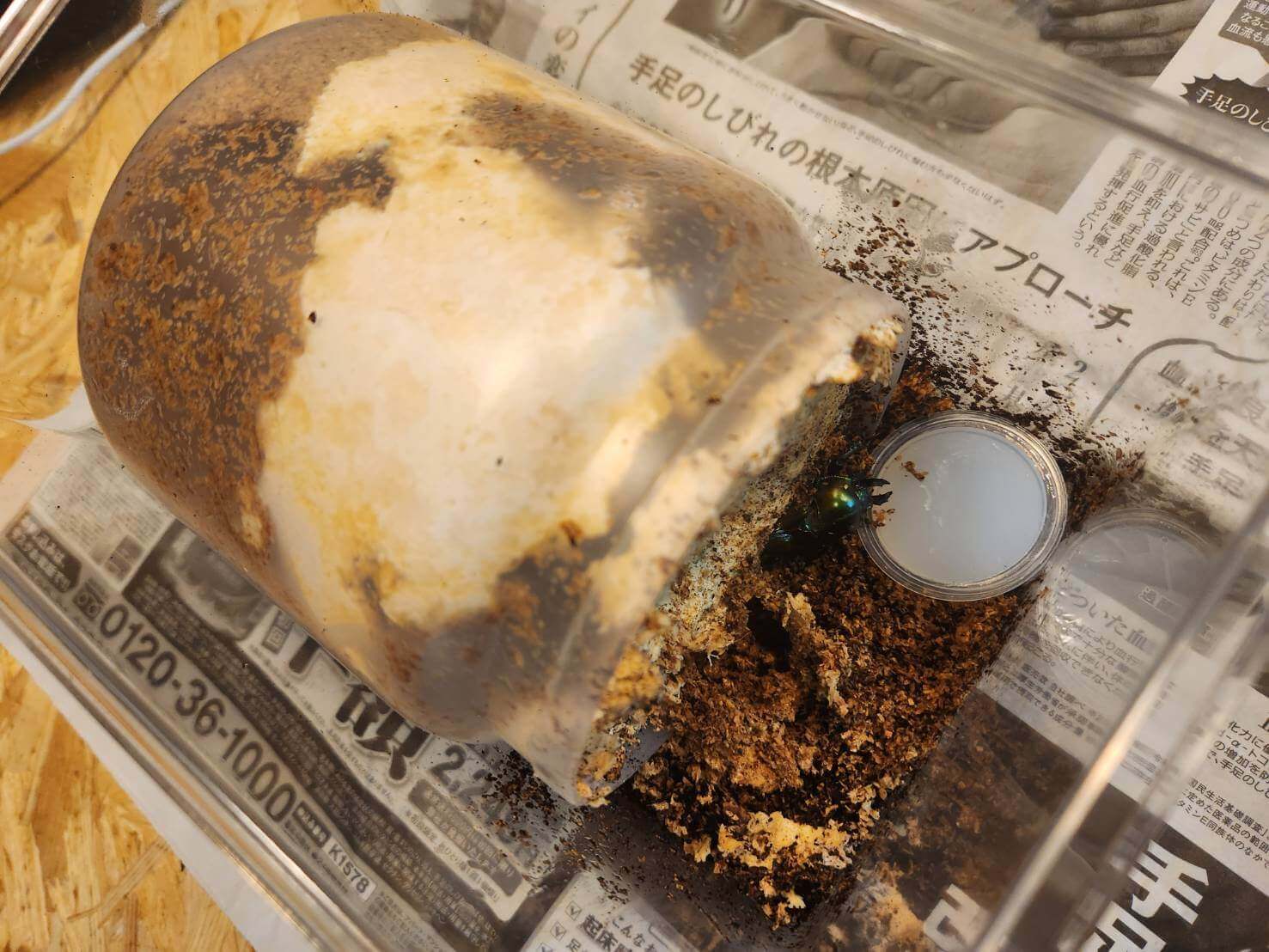 2023/06/26~7/10までメスを入れて、メスを取り出したあと、菌糸ビンが緑にかびてきたので、7/20に割り出し。