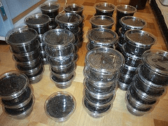 マットが劣化して変色すらしていたにもかかわらず、70を超える数が出てきた事は非常に驚きました。しかもそれが3.5リットルの小ケースでと云うのは輪を掛けて衝撃を受けました。出てきた幼虫も初令~2令中期と丁度いいタイミングだったようです。