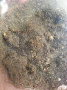 クワガタは初めての産卵でした、菌糸ビンに入れて見たところ、元気の様子です。(写真は、割り出しから1週間後)