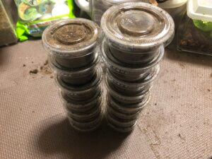 コバエシャッター(小)に微粒子系の産卵Mat《プロトタイプ》を固詰しました。固さは固すぎず、柔らかすぎず。水分量も一般的な量です(加水後、手で握ると泥団子ができるくらい)。