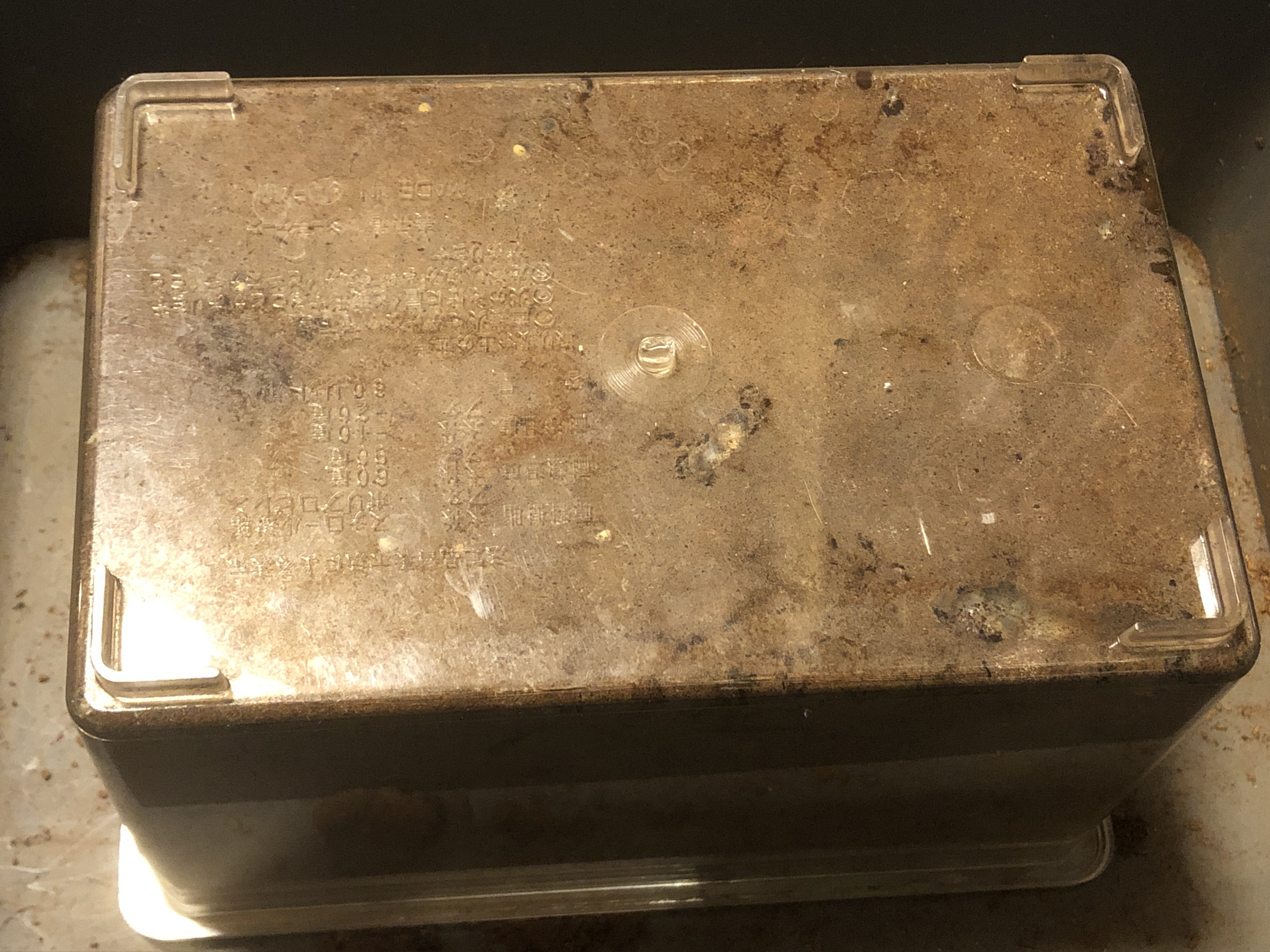 コバエシャッター(小)に微粒子系の産卵Mat《プロトタイプ》を固詰しました。固さは固すぎず、柔らかすぎず…。水分量も一般的な量です(加水後、手で握ると泥団子ができるくらい)。同居させたままにしました。