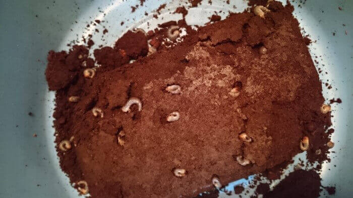 産卵木をマットに入れてみて、心持ちマットの劣化が少ない印象。幼虫は何れもマットに産んでおり、産卵木自体には齧った後なし。