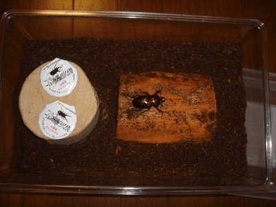 コバエシャッター中にきのこマット5cm堅詰めし、その上に加水した霊芝材を乗せ、霊芝材の4分の1くらいまでフンワリとマットを入れました。