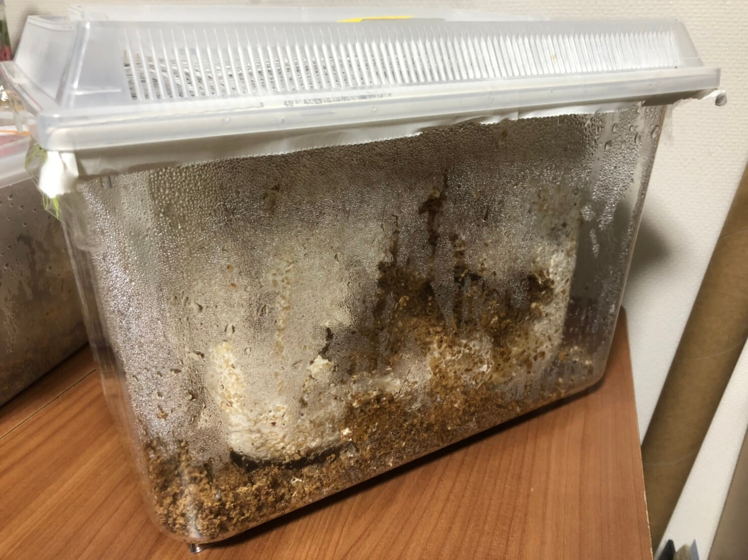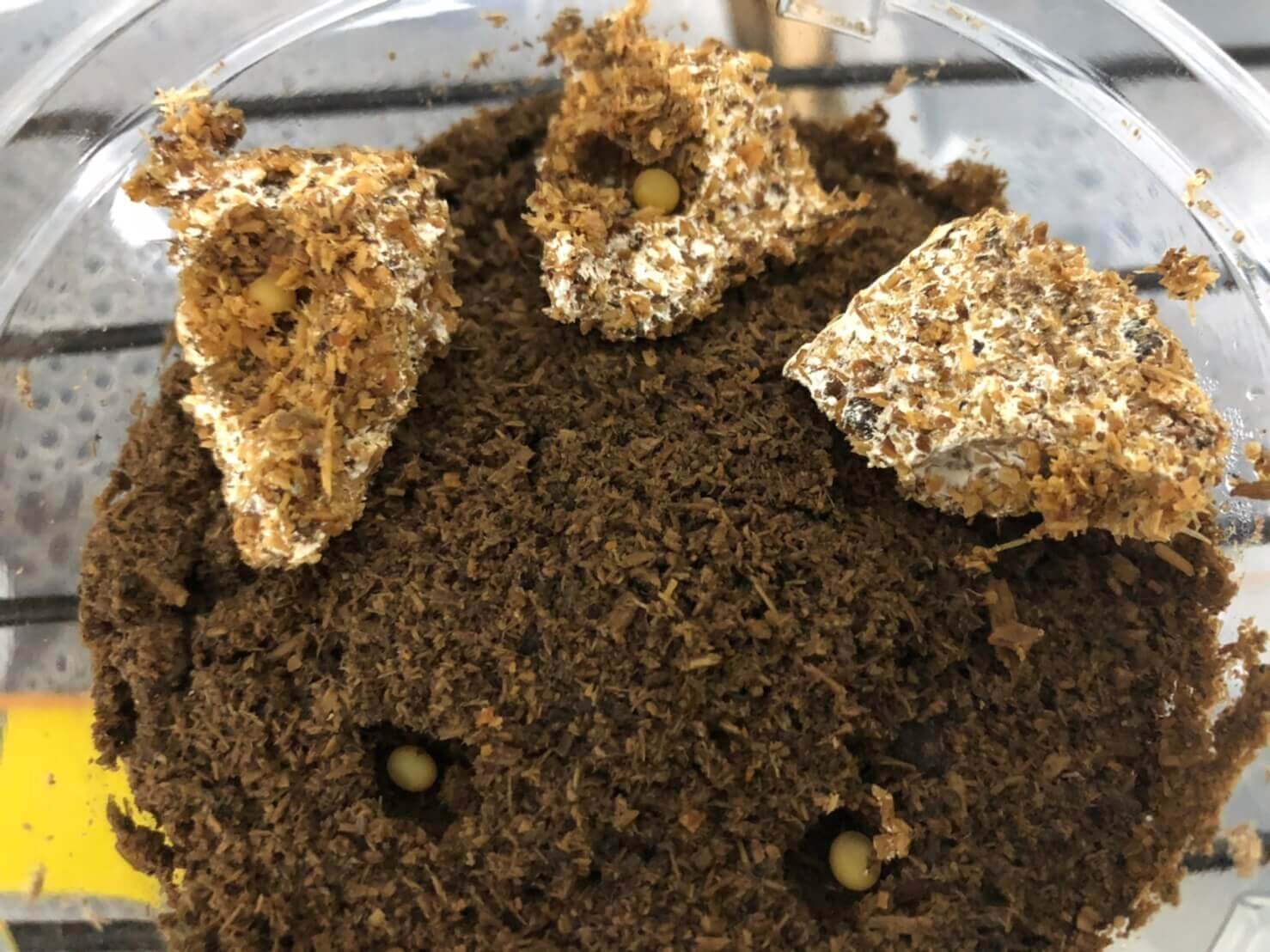 産卵しているか、卵が菌糸にまかれていないか心配だったので早めに割り出しましたが、卵も丈夫で菌糸も大丈夫そうだったので孵化して幼虫が成長してからでもよかったかもと思いました。