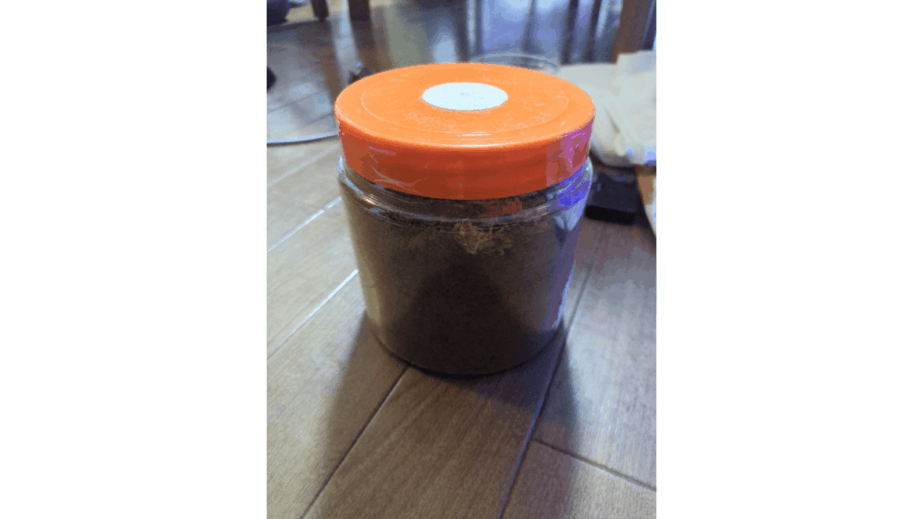 1800mlのボトルに少し加水して半分ガチガチに固詰めして残りをふんわり詰めて♂♀を産卵セットに同居させました