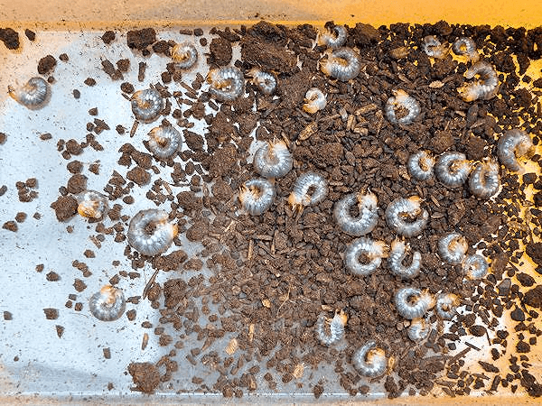 完熟Matをふるいにかけ、微粒子のみを使用。小ケースにガチ固詰め。一箇所、小指径程度の深い穴を開け、♀投入。 3/31(2週間後)に、マット上に出ていた♀を取出し4/14に、初令3頭視認。5/4に、34頭ほぼ全て二令で割出
