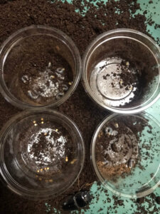 ニジイロクワガタ(材)並みにガチガチに詰めると、潜る時に体力を使ってしまうせいか卵を産んでくれなくなってしまった(過去8回くらい失敗した)ので自分の中の8割の力でマットを詰めました。水も多く入れすぎてマットが劣化してしまったこともあったので加水は少なめにして組みました。