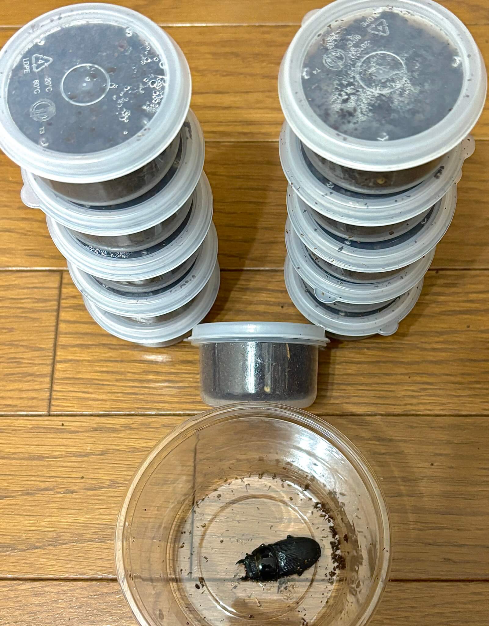 最近投稿しているレポートのボルネオパリーやスマトラパリーと同様マット産みに集中し、マットから8卵(内1つは踏みつぶされていました)、材から4卵で合計確保数11卵となりました。