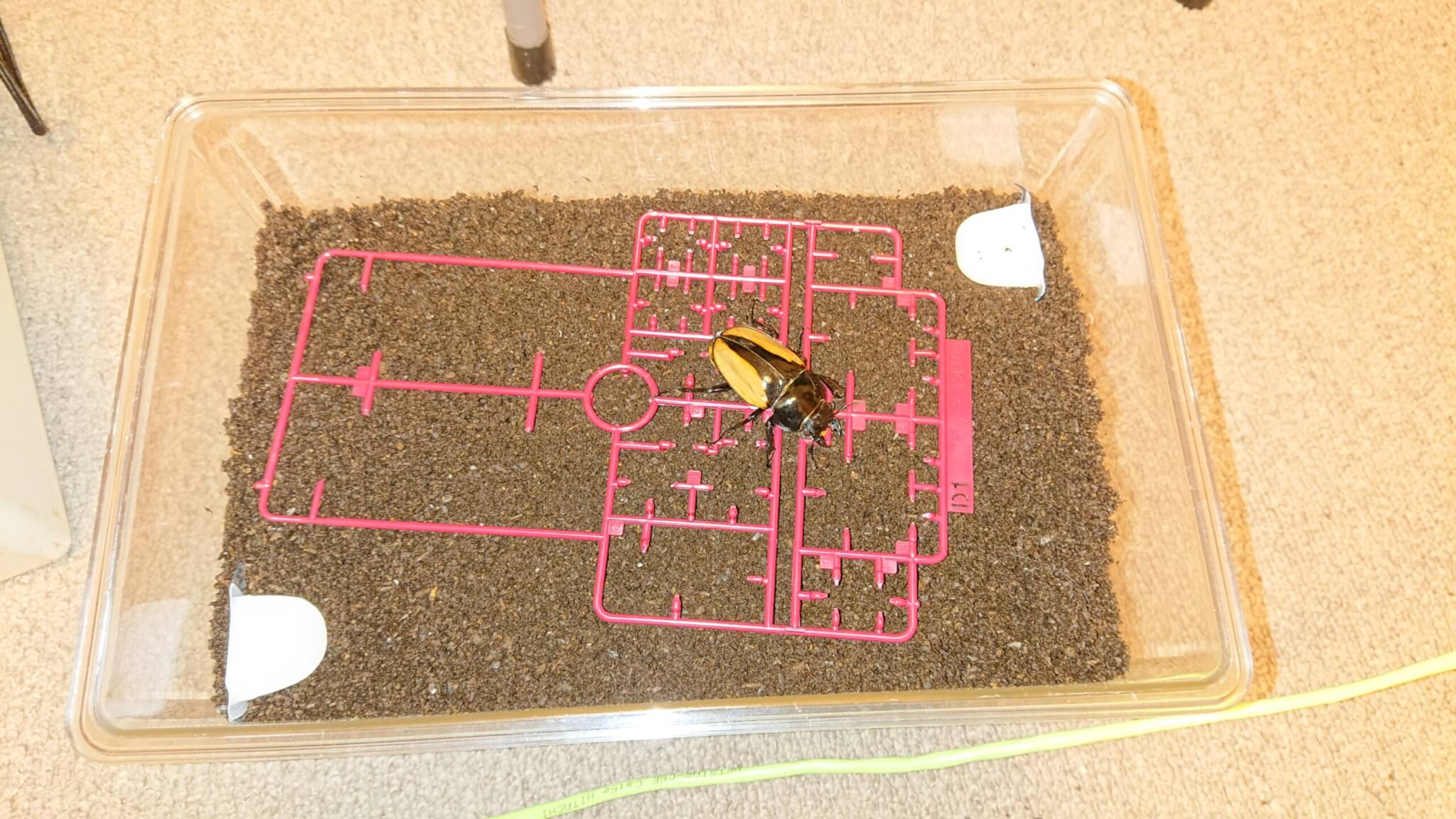 樹皮等が無かったためプラモの廃棄ランナーを転倒防止用に入れ、プロゼリーをセットし♀を投入。