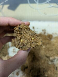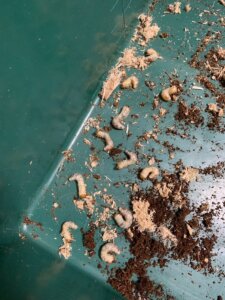 5Lケースで底3cm程度固詰め、砂埋めレイシ材を使用。材の周りは完熟マットと黒土マットを混ぜて篩ったものでふんわりと埋めた。
