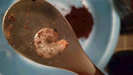 割り出しの際に外から幼虫が見えないので、また失敗か、と思ったが、幼虫飼育用のプリンカップ300cc+きのこマットの用意した数を上回る産卵で、びっくり。殆どは材に産んでいて、マットにいたのは4頭のみ。セットから2か月以上なので、一部2令?大きさが倍くらい違う個体が混じっている。