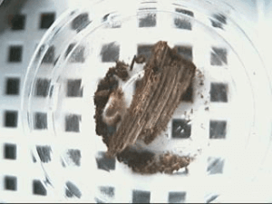 ケースにきのこMatと産卵木を入れて1ヶ月同居を実施。マットに幼虫2、卵3を生んでいました。まだ継続して♀を入れたままで1ヶ月置く予定。過去2年、卵は数個生むが孵化に失敗しており初めての幼虫取り出しです。