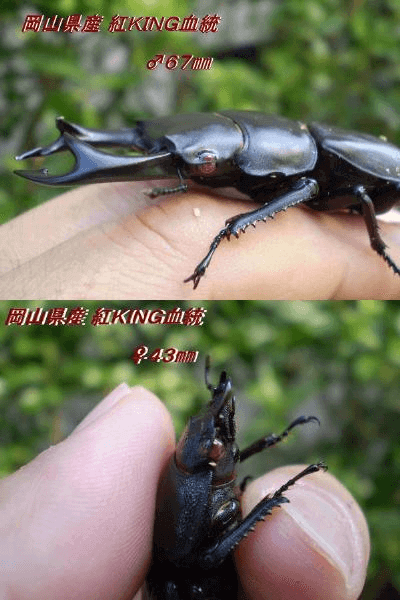 | 親虫の情報 | 親虫岡山県産 紅KING血統♂67㎜(羽化日:09年6月17日)♀43㎜(羽化日:09年6月11日) |