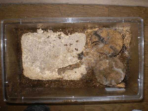 プラケース大に菌糸ブロック1個、産卵木2本、きのこMat