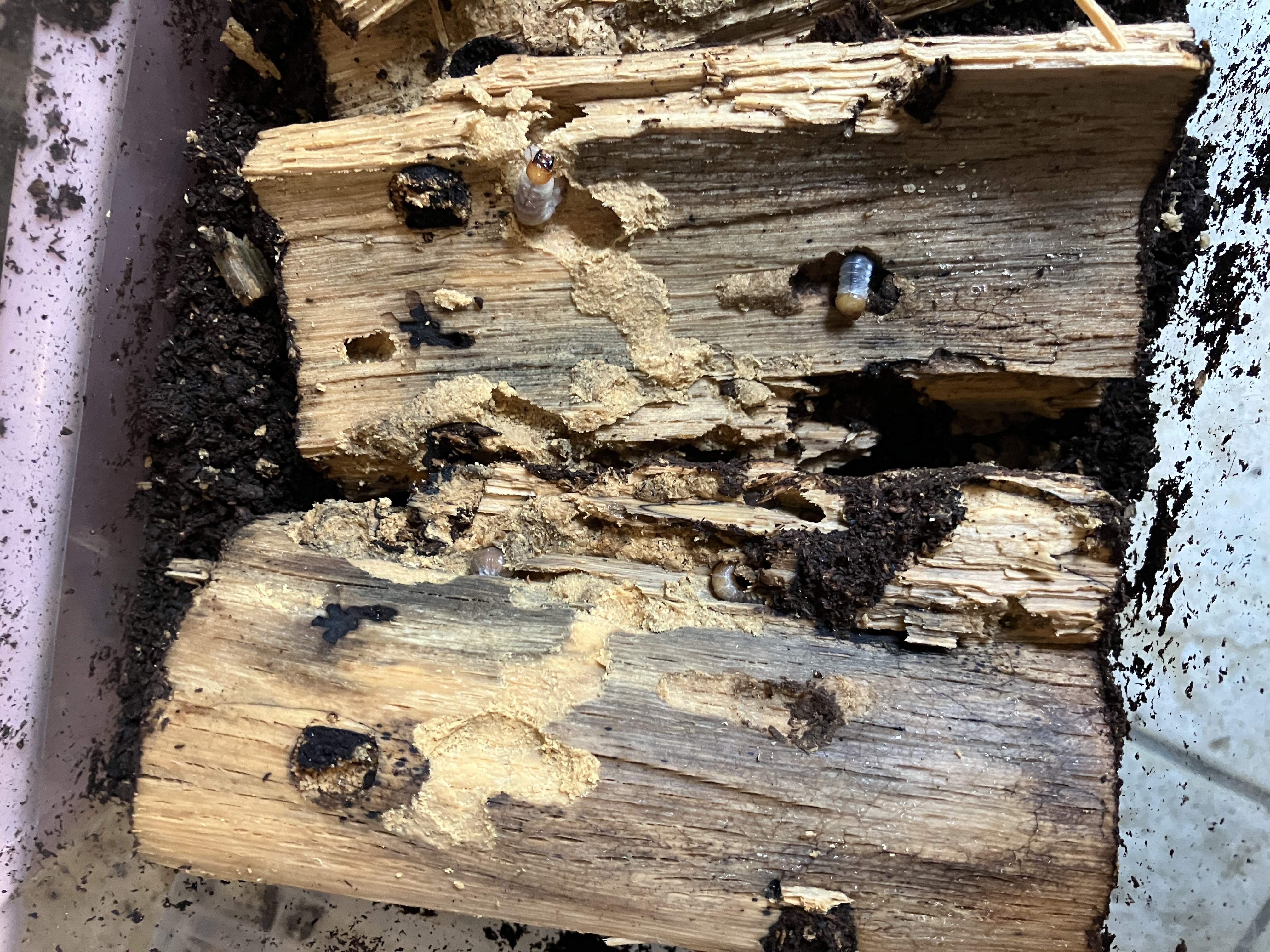 木の芯は固かったので暫く放置しますが、中にもう少しいるかもしれません。卵も無いつもりで見ていたので、見落としが新たに孵化する事を期待。